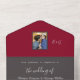 This all in one wedding invitation card is special. You get your invitation card and the RSVP card all in one.  You can customise the modern and elegant wedding invitation card with your couple photo, Intro, names, occasion, date, adress, rsvp, meals and other background colours to your preferations. Even the image is changeable. It shows a harmonious blend of burgundy + grey and it has fitting white typography. It is a simple minimal fancy design with fitting burgundy + grey tone backgrounds.  You can elegant seal and send this trifolded budget wedding invitation. Send the tear off RSVP Postcard back to the sender. Make this special design yours and feel like the elegant future couple to be. Hobinishop