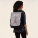 This Bold Face backpack with a interchangeable front face has an illustration in burgundy of the Eiffel Tower in France surrounded by white daisy flowers on a grey background with the text Oh Paris.