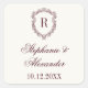 Set against a soft ivory background, the rich burgundy monogram crest serves as the focal point, symbolizing legacy and romance. Elegant script lettering paired with classic typography creates a balanced, formal composition that feels elevated without being ornate. The square shape adds structure and versatility, making this sticker a seamless addition to both modern and traditional wedding décor.