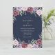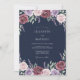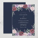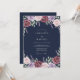 Rich burgundy and soft lavender blooms intertwine with delicate greenery. This design evokes a romantic and elegant atmosphere, perfect for a sophisticated occasion. The deep navy background enhances the vibrant floral accents.