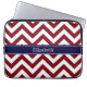 Burgundy Lg Chevron Navy Blue Name Monogram Laptop Sleeve