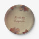 Burgundy Maple Leaves and Rustic Burlap Fall Paper Plate