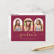 Burgundy Maroon Gold Arch 3 Photo Graduation Announcement Postcard