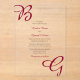 This design features the bride's and groom's initials in burgundy maroon colour as the main focus of the design. Personalised script initials using script font typography creates a perfect fusion of modern and elegance. A simple custom minimalist Autumn Fall or any other season wedding invitation design with modern burgundy maroon monogram. Matching wedding stationery items and other wedding invite formats are also available. To re-position the initials please click "Click to customise further" link when personalising details.