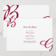 This design features the bride's and groom's initials in burgundy maroon colour as the main focus of the design. Personalised script initials using script font typography creates a perfect fusion of modern and elegance. A simple custom minimalist Autumn Fall or any other season wedding save the date card design with modern burgundy maroon monogram. Matching wedding stationery items and other wedding invite formats are also available. To re-position the initials please click "Click to customise further" link when personalising details.