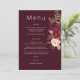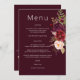 Celebrate your wedding or party your reception with style and beauty with this pink blush and burgundy marsala floral menu. Customise with your entree options and monogram. Available with a white, black, burgundy, pink, and dark burgundy background.