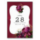 Vintage marsala (burgundy) and gold shabby-chic flowers wedding table number cards with accents of black and plum.