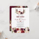 Burgundy Marsala Floral Antlers Monogram Sweet 16 Invitation