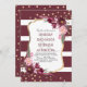 Burgundy Marsala Floral Stripes and Gold Wedding Invitation