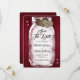 Rustic burgundy wedding save the date card featuring a mason jar with string lights and burlap hearts against a barn wood background adorned with twinkle lights. Easily personalise this cute rustic burgundy wedding save the date online. Matching items available to complement this burgundy wedding save the date.