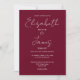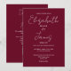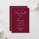 This burgundy minimalist elegant script wedding invitation can be personalised with your information in chic typography with your wedding website details and your QR code on the reverse. Designed by Thisisnotme©