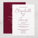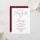 This burgundy minimalist elegant script wedding invitation can be personalised with your information in chic typography with your wedding website details and your QR code on the reverse. Designed by Thisisnotme©