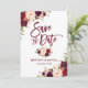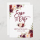 Modern Brush Script, Watercolor Burgundy Marsala Floral, Save The Date Engagement Card