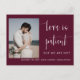 This wedding elopement announcement invitation postcard features an elegant calligraphy and simple sans serif typography font with a photo on a burgundy background for a clean minimalist and modern look, which is a beautiful way to inform about your upcoming wedding. The simplicity of this design adds a touch of elegance to your wedding announcement cards. It works well with many wedding themes and definitely a great addition to your wedding. Just customize the names and wording in a few easy steps and personalize the invitation postcard with your photo of the happy couple to give your postcard a nice personal touch.