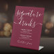 Burgundy Modern Script Wedding Signature Drinks Pedestal Sign