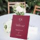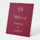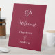 Burgundy monogram modern simple wedding welcome pedestal sign