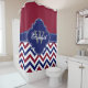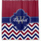 Burgundy Navy Blue LG Chevron 1ICBR Name Monogram Shower Curtain