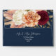 Send your wedding stationery in style with this elegant burgundy and navy blue floral envelope. Featuring watercolor roses in burgundy, ivory, and peach with pampas grass and greenery, paired with a rich navy background and warm blush-peach liner, this design is both romantic and timeless. Personalise with your return address for a polished finishing touch. Perfect for mailing invitations, save the dates, RSVP cards, or thank you notes. Matching invitations, menus, programs, place cards, and welcome signs are available in our collection for a complete wedding suite.