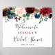 Burgundy Navy Blush Floral BRIDAL SHOWER Welcome Poster.