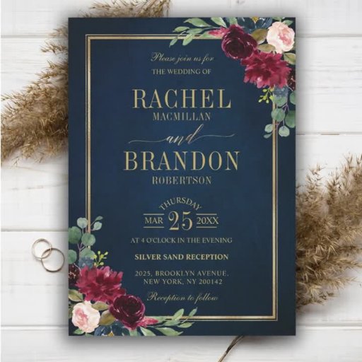 Burgundy Navy Blush Floral with Gold FrameDesigned by Bliss Design Studio