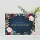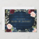 Elegant and modern romantic geometric watercolor floral will you be my maid of honour invitation features a beautiful burgundy / marsala , blush pink, peach , navy blue watercolor roses with matching foliage on navy blue rustic wood background and gold frame. Perfect for a fall / midsummer wedding. Please find more matching designs and variations from my "blissweddingpaperie" store. And feel free to contact me for further customisation or matching items