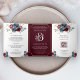 Burgundy Navy Floral Ampersand QR Code Wedding Tri-Fold Invitation
