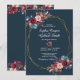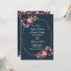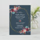 Burgundy Navy Floral Gold Frame on grey Wedding Invitation