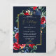 A rustic fall winter elegant burgundy and navy blue floral watercolor , real gold foil border and greenery leaves calligraphy wedding invitation , add your photo. With a beautiful brush calligraphy script.