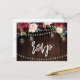 Watercolor burgundy red navy blush pink rustic country classy chic floral design with string lights and mason jars RSVP card template with green botanical foliage and eucalyptus leaves in wooden background. This beautiful easy to customise design can match easily with your wedding colours, styles and theme and it is a perfect choice for fall midsummer or winter country weddings. You can find more matching designs from my store or contact me if you need any help in design customisation.
