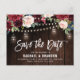 Watercolor burgundy red navy blush pink rustic country classy chic floral design with string lights and mason jars Save the date card template with green botanical foliage and eucalyptus leaves in wooden background. This beautiful easy to customise design can match easily with your wedding colours, styles and theme and it is a perfect choice for fall midsummer or winter country weddings. You can find more matching designs from my store or contact me if you need any help in design customisation.