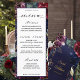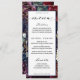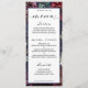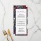 A classic dinner menu offering starters, main course and dessert selections. Titles are written in a classic black swash font calligraphy and the menu selections are in an easy to read block text. The menu is fully customisable for any occasion. An assembly of deep burgundy red, purple and navy blue peonies adorned with shimmering gold outlines against a dark rich navy blue watercolor canvas with splotches of gold sets the tone for this lavish wedding invitation. A lively script in gold announces your details and invites your guests to your wedding.
