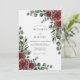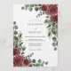 This design features a rich, painterly arrangement of deep burgundy blossoms and lush green eucalyptus foliage. The artwork evokes a sense of romantic, natural beauty with a sophisticated, artistic flair. The deep red blooms and abundant greenery create a striking and elegant aesthetic.