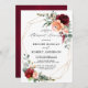 Burgundy Peach Burnt Orange rehearsal dinner Invitation featuring elegant bouquet of burgundy, red, Marsala, maroon , Peach , Salmon pink, coral , and blush colour rose flowers buds and sage green eucalyptus leaves. Please contact me for any help in customisation or if you need any other product with this design.