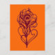 Burgundy peacock feather postcard. Background colour can be customised.