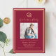 Burgendy background, decorated with a golden frame, and a faux gold graduation cap. Personalise and add a photo name and details.