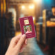 Burgundy background, white text. Add your business logo, a photo, name and title.