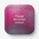 Burgundy Pink Bokeh Hearts Birthday Paper Plate