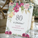 Burgundy Pink Floral 80th Birthday Pedestal Sign