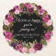 Elegant and romantic pink, burgundy, and purple watercolor vintage floral and foliage on black custom birthday party paper coaster with gold glitter. Personalised with the name of the guest of honour along with a message "We're so happy you're joining us." All text is customisable. Contact me for assistance with your customisations or to request additional matching or coordinating Zazzle products for your party.