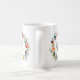 Custom coffee mug features a script monogram initial framed by an elegant boho style floral wreath design with beautiful fall watercolor flowers, including roses, dahlias, peony flowers, and greenery, in a gorgeous autumn palette of burgundy red, golden yellow, peach orange, blush pink, and shades of green. Personalise with a first name initial.