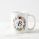 Burgundy Pink Floral Wreath Script Initial Coffee Mug