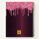 Burgundy pink flowers glitter drips monogram notebook