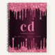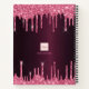 A burgundy faux metallic looking background with cherry pink faux glitter drips, paint dripping look. Personalise and add your monogram initials, name and a title.