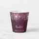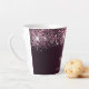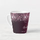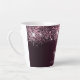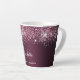 An elegant, girly and glamourous mug. Deep, dark moody burgundy gradient background, decorated with pink glitter dust. Personalise and add your first name, monogram initials and full name. The first name is written with a modern hand lettered style script. Light pink coloured letters.