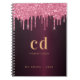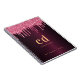 A dark burgundy faux metallic looking background with elegant cherry pink faux glitter drips, paint drip look. Personalise and add your monogram initials, name and a title/year. Golden text.