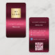 A burgundy and pink gradient background. Personalise and add your business logo,name, title and contact information. Add your website url/link to the Qr code. With Facebook icon. White text.