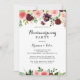 This burgundy pink purple spring housewarming party invitation is perfect for a modern new home celebration. The hand-painted design features green leaves, dazzling pink, blush, purple, red, white and burgundy dazzling roses, peonies neatly arranged in small cute bouquets.