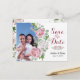 Burgundy and pink chic country rose floral photo wedding save the date postcard. This pink and white roses photo template wedding save the date postcard is a good choice for a summer wedding or a fall / autumn wedding. Although, you can also use this wedding save the date postcard for a spring or winter wedding as well. This rose flower wedding save the date postcard features beautiful watercolor pink and white rose bouquets with rose buds and green leaves. This rose wedding photo save the date postcard has a great country look, so it's perfect for a country style wedding.