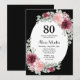 Burgundy Pink Roses 80th Birthday Black Invitation