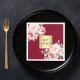 Personalise and add your business, company logo. Burgundy background colour. Decorated with pink watercolored roses, florals.